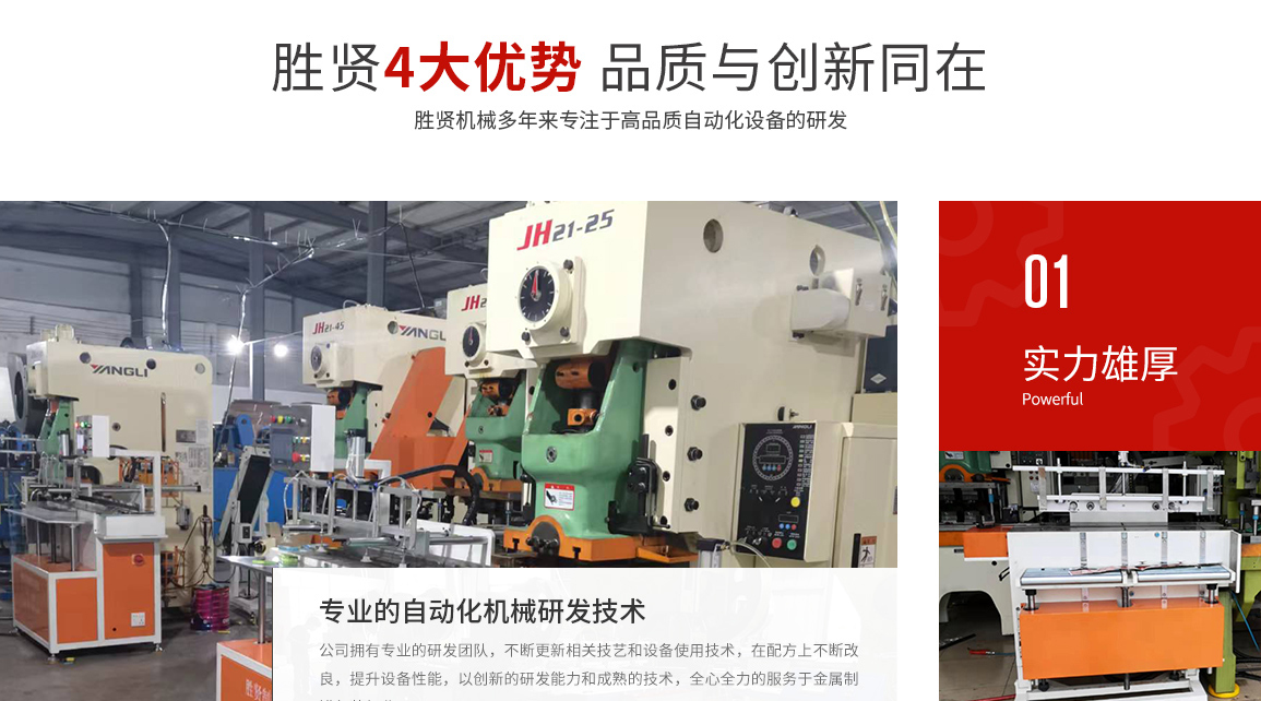 東莞市勝賢機(jī)械設(shè)備有限公司,是一家專業(yè)從事金屬制罐包裝行業(yè)的整套自動(dòng)化設(shè)備和模具開(kāi)發(fā)、制造與銷售的公司,擁有成熟的技術(shù)和創(chuàng)新開(kāi)發(fā)能力。我們擁有有一批多年從事設(shè)計(jì)、研究開(kāi)發(fā)的工程師,和設(shè)備、模具制作的技術(shù)人才。不斷推進(jìn)制罐行業(yè)向高效、環(huán)保、節(jié)能、操作簡(jiǎn)易化的方向發(fā)展。 公司主要產(chǎn)品:多次元機(jī)械手設(shè)備生產(chǎn):含片盒蓋/底自動(dòng)生產(chǎn)線,煙盒蓋/底自動(dòng)生產(chǎn)線,醫(yī)藥盒蓋/底自動(dòng)生產(chǎn)線,茶葉罐蓋圈/酒罐蓋圈自動(dòng)生產(chǎn)線,酒罐蓋自動(dòng)生產(chǎn)線、茶葉罐拍底自動(dòng)生產(chǎn)線等等。 罐身自動(dòng)扣骨機(jī)生產(chǎn):茶葉罐/酒罐/化妝品罐/內(nèi)衣罐等等. 其中多次元機(jī)械手專為兩片盒的生產(chǎn)和三片罐的蓋、底、蓋圈、拍底蓋等的生產(chǎn)而設(shè)計(jì),...